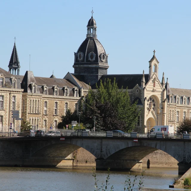 In the middle of the afternoon, after a nice picnic by the river, we get back on the road toward Château‑Gontier, where we’ll be spending the night at the Camping du Parc. With the beautiful weather, the towpath is a joy to ride along, and the 20 kilometers fly by thanks to regular breaks to enjoy particularly scenic spots or watch the horses — a surprising discovery for our son, who isn’t even a year old yet!